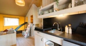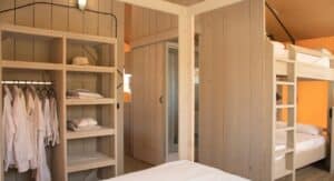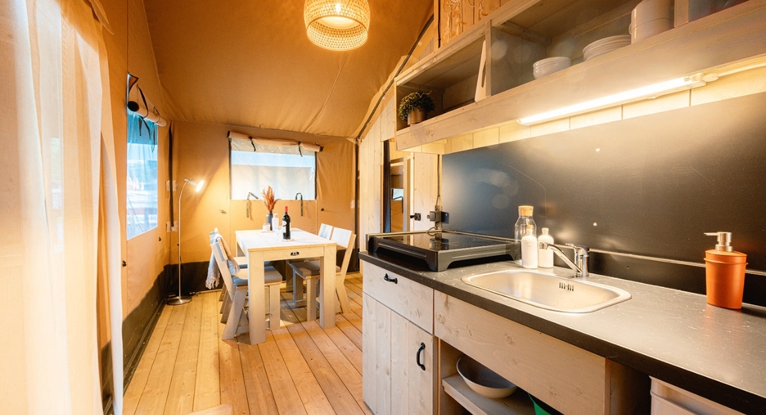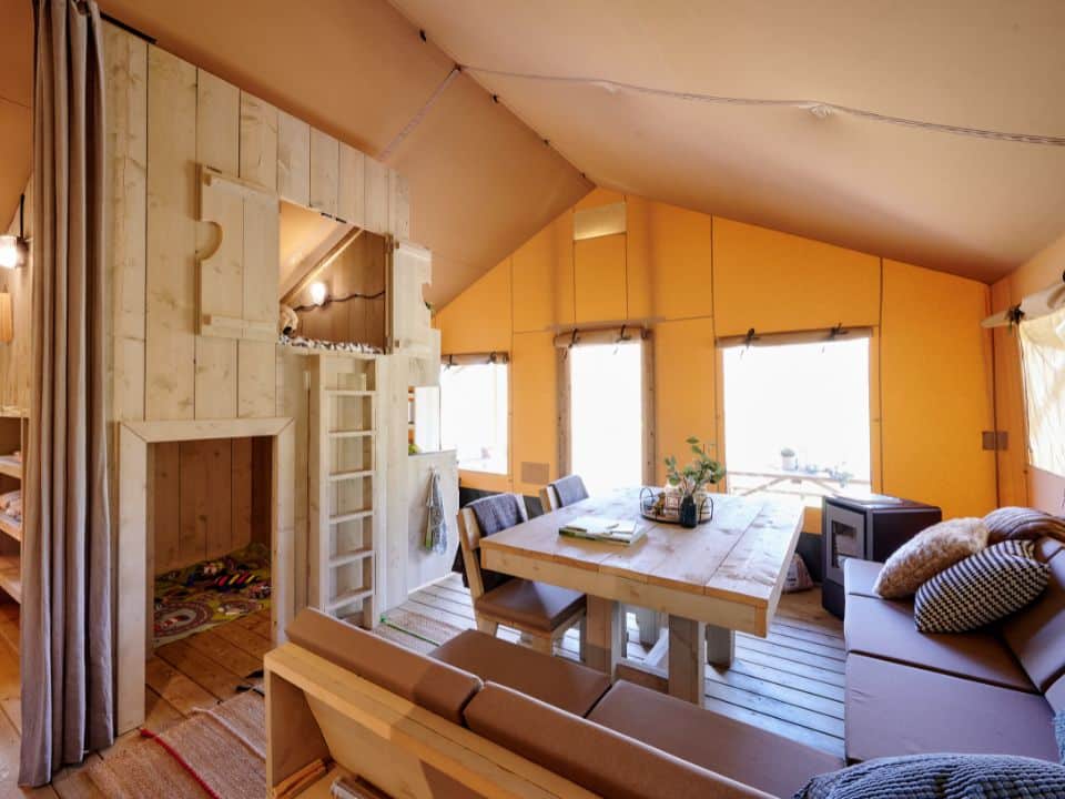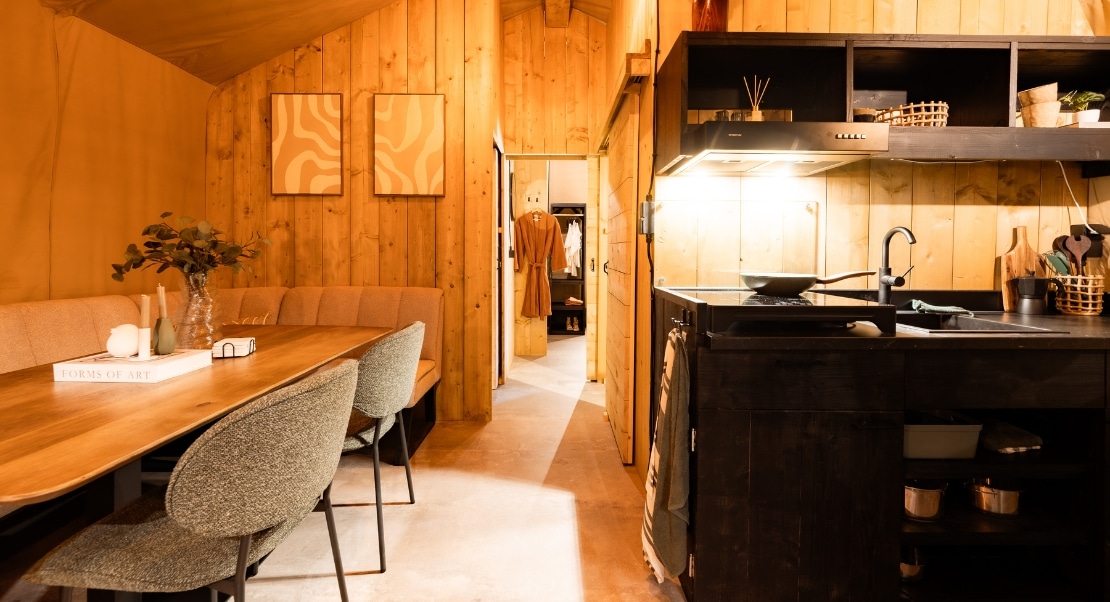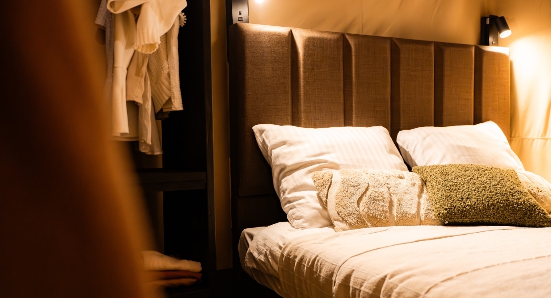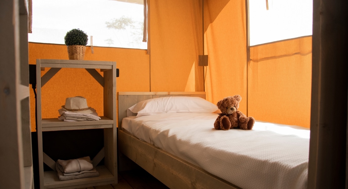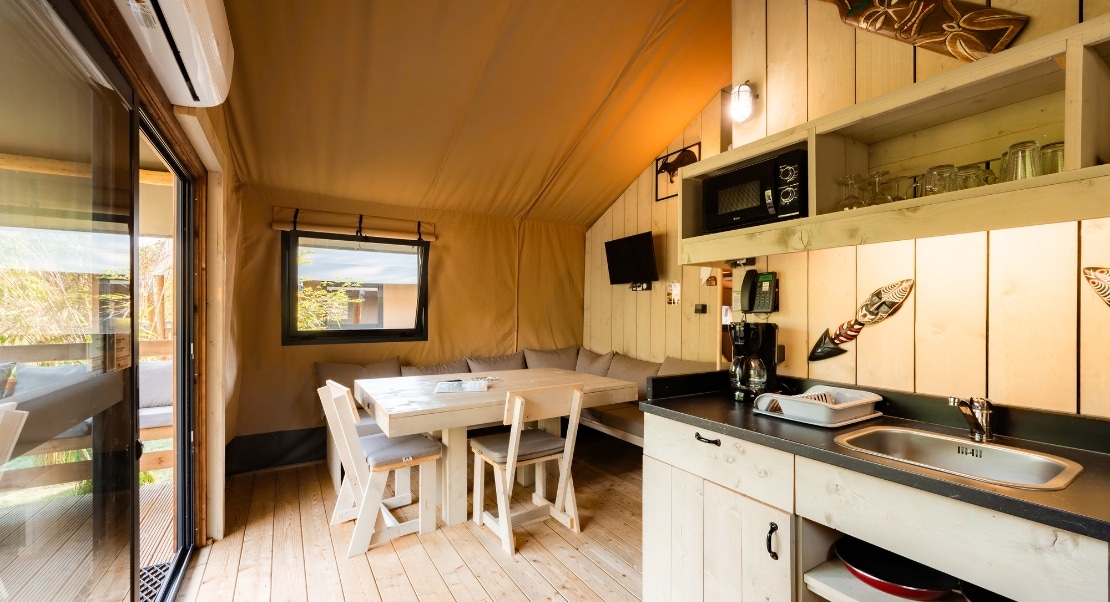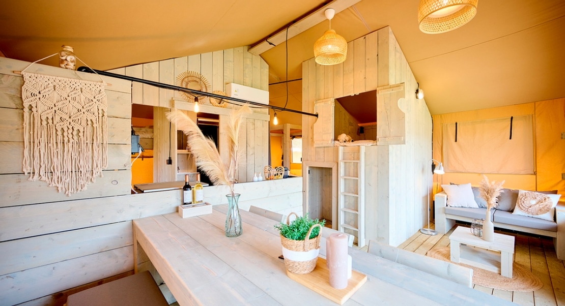 Nuestro interior Safari Adventure ofrece un ambiente cálido, natural y resistente. Con materiales auténticos, esta línea lleva el encanto de la naturaleza al interior. Perfecta para campings que desean ofrecer una auténtica experiencia de glamping sin renunciar al confort. Los detalles de madera refuerzan el carácter aventurero del glamping.
